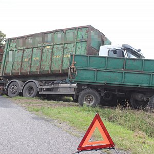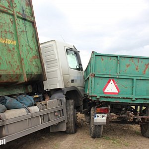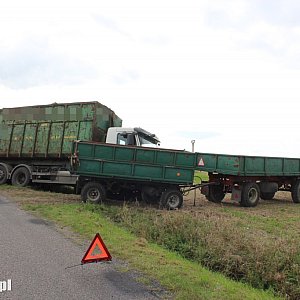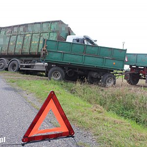 Do zdarzenia doszło 15 września około godz. 14:00 na trasie Czajkowo - Łęka Mała. Kierowcy obu pojazdów – volvo oraz ciągnika rolniczego - jechali w kierunku Gostynia. W pewnym momencie ciągnik z dwiema przyczepami rolniczymi miał podjąć manewr skrętu w lewo. - Byłem już w momencie wyprzedzania, ale miałem jeszcze bezpieczną odległość. W ostatniej chwili kierowca ciągnika zaczął wykonywać manewr skrętu w lewo. W tym momencie próbowałem hamować, uciec, aby nie uderzyć centralnie kabiną... Pewnie rów trochę wyhamował - mówił kierowca ciężarowego volvo przewożącego złom. - Nie widziałem, żeby miał migacz włączony. Później dopiero widziałem, że miga, ale na ciągniku - dodał. Do czasu wyciągnięcia pojazdu z rowu ruch na drodze Czajkowo - Łęka Mała będzie utrudniony. Konieczne jest sprowadzenie specjalnego holownika, który wyciągnie auto i przyczepę. - Przyczepy załadowane są po brzegi, boimy się, że może się przewrócić - mówił kierowca volvo.