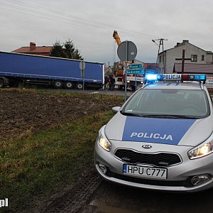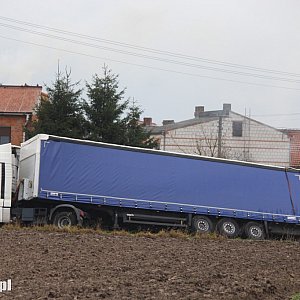 W tym miejscu tej ciężarówki nie powinno być,objazd wytyczony jest innymi drogami.Tak to jest jak przepisy ma się w d....