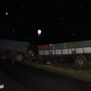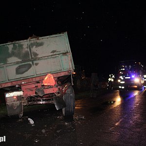 Do zdarzenia doszło 6 grudnia około godz. 17:30 na prostym odcinku trasy Krobia - Chwałkowo. Z nieustalonych na razie przyczyn samochód osobowy uderzył w przyczepę ciągnika rolniczego. Siła uderzenia była na tyle duża, że opel wypadł z drogi i dachował na pobliskim polu. Ciągnik rolniczy również wjechał na pobliskie pole, ale po przeciwnej stronie jezdni. Przyczyny i okoliczności zderzenia ustala policja. Na miejscu pojawiły się również zastępy straży pożarnej i załoga karetki pogotowia, która przebadała kierowcę samochodu osobowego.