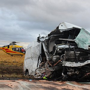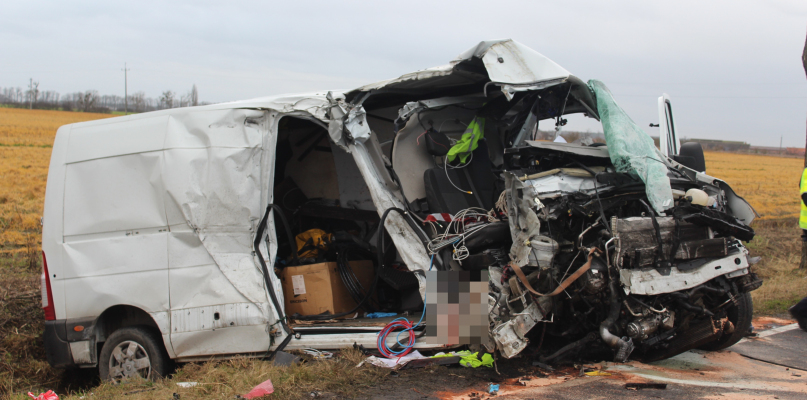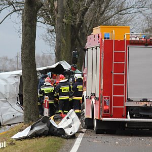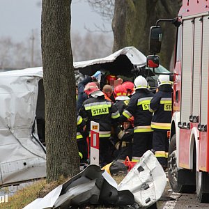 Do zdarzenia doszło 4 stycznia o g. 13:15 na prostym odcinku trasy Borek Wlkp. - Koszkowo. Samochód typu bus, którym jechały dwie osoby, uderzył w kilka drzew i wpadł do rowu. - Pojazd od strony pasażera był bardzo mocno zgnieciony. Zakleszczony był pasażer, z licznymi obrażeniami. Trudno było go wydobyć. Użyliśmy sprzętu hydraulicznego i wyciągarki samochodowej, aby rozciągnąć ten rozbity samochód - mówi. mł. bryg. Michał Pohl, zastępca komendanta KP PSP w Gostyniu. Obrażenia poszkodowanego mężczyzny były na tyle poważne, że zespół ratownictwa medycznego podjął decyzję o wezwaniu Lotniczego Pogotowia Ratunkowego. Kierowca pojazdu nie odniósł obrażeń, jedynie drobne skaleczenia. Siła uderzenia musiała być ogromna. Na całej szerokości jezdni i poboczach leżą części samochodowe. Pojazd od strony pasażera został całkowicie zmiażdżony.