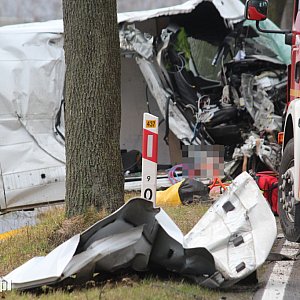 Kolejny w ostatnim czasie wypadek na trasie Dolsk - Borek Wlkp. Na wysokości Koszkowa kierowca busa z nieznanych na razie przyczyn odbił się o drzewo, a następnie uderzał w kolejne. Samochód został poważnie uszkodzony, a pasażer siedzący obok kierowcy ledwo uszedł z życiem. W poważnym stanie został zabrany przez śmigłowiec Lotniczego Pogotowia Ratunkowego.