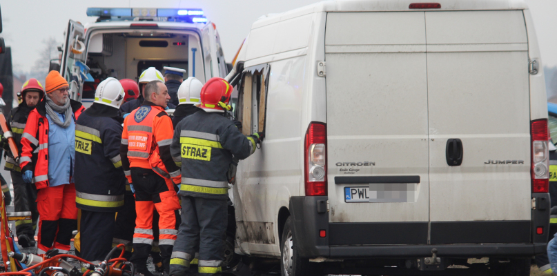 Na miejscu wypadku pracują policjanci. - Ze wstępnych ustaleń policjantów pracujących na miejscu zdarzenia wynika, że kierujący citroenem jumperem mieszkaniec powiatu wolsztyńskiego na prostym odcinku drogi prawdopodobnie wskutek zaśnięcia zjechał na przeciwległy pas drogi, gdzie czołowo zderzył się volkswagenem T4, którym kierował mieszkaniec powiatu gostyńskiego - mówi Sebastian Myszkiewicz, rzecznik gostyńskiej policji. Citroenem jechały cztery osoby, volkswagenem tylko kierowca. Na czas wykonywania czynności policja wyznaczyła objazdy.