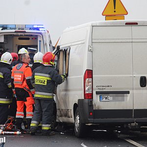 Do wypadku doszło około godz. 7:25 na prostym odcinku drogi Płaczkowo - Hersztupowo. Czołowo zderzyły się volkswagen T4 i citroen jumper. Pojazdami, z czego jeden był na gostyńskich tablicach rejestracyjnych, podróżowało łącznie pięć osób. - Kierowcy obu pojazdów zostali uwięzieni. Strażacy przy użyciu sprzętu hydraulicznego musieli wykonać niezbędny dostęp do uwięzionych i przekazać ich zespołom ratownictwa medycznego. Poszkodowani cały czas byli przytomni - mówił mł. bryg. Rafał Wypych, oficer prasowy KM PSP w Lesznie. Na razie nie są znane ich obrażenia. Do gostyńskiego szpitala przewieziono również jednego z pasażerów citroena. Pozostali uczestnicy zdarzenia pozostali na miejscu.