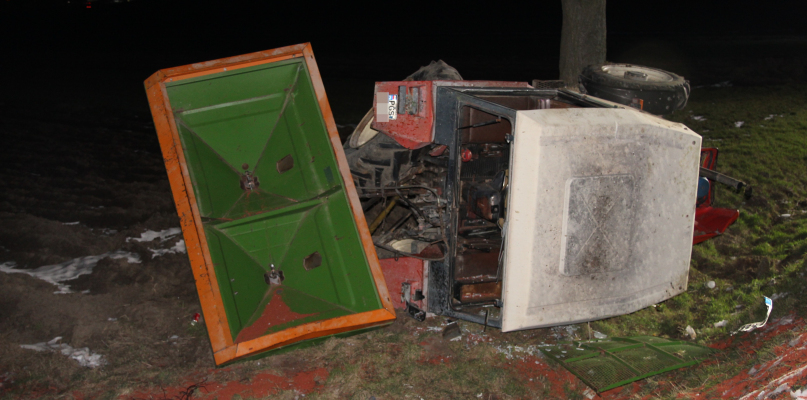 Ale to nie była wina kierowcy ciągnika. Kierowca skody unikał czołowego zderzenia przy wyprzedzaniu ciągnika.