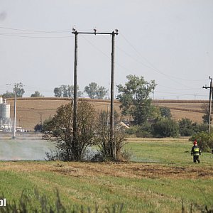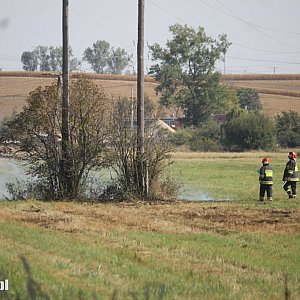 Dziś kilka minut po godz. 14 gostyńscy strażacy zostali skierowani do pożaru, jaki powstał na łąkach znajdujących się za ul. Ogrodową w Gostyniu. Paliła się sucha trawa, po raz drugi w tym samym miejscu. - Na szczęście bez strat - mówi asp. sztab. Przemysław Janicki, dowódca KP PSP Gostyń. - Być może jest to efektem iskrzenia z tej linii energetycznej lub celowa działalność człowieka, ale nikogo tutaj nie widać - wyjaśnia dowódca akcji. Żeby ugasić pogorzelisko, strażacy wjechali jednym z aut na łąki. Z uwagi na zły stan drewnianego mostka musieli jechać okrężną drogą - od strony drogi powiatowej Gostyń - Pępowo.