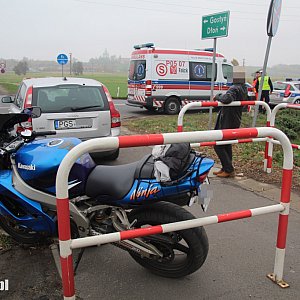 Według niepotwierdzonych na razie informacji motocyklista widząc wyjeżdżające od Podrzecza auto próbował uniknąć zderzenia i położył jednoślad na jezdni. Być może przez to udało mu się uniknąć poważnych obrażeń. Początkowo wydawało się, że poszkodowanemu motocykliście nic nie dolega, jednak po kilkunastu minutach poprosił o przyjazd karetki. Został zabrany do szpitala na badania, od ich wyników będzie zależało czy zdarzenia zostanie zakwalifikowane jako kolizja czy jako wypadek.