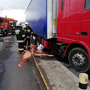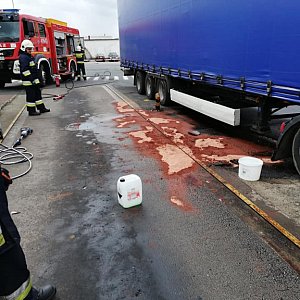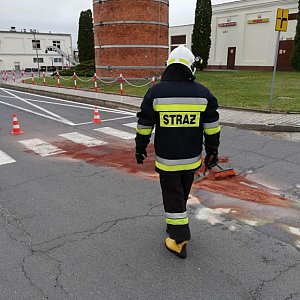 Zastępy strażaków działały na terenie firmy produkcyjnej w Pudliszkach. W wyniku kolizji doszło tam do wycieku. Konieczne było sprowadzenie dodatkowego środka do neutralizacji płynnej substancji.