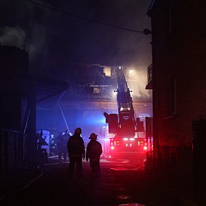 Potężny pożar wybuchł w nocy w Goli, gmina Gostyń. Palił się budynek gospodarczy. Z naszych informacji wynika, że ogień pierwsi zauważyli sąsiedzi, którzy usłyszeli hałasy. - Wydawało nam się początkowo, że grad pada, a to eternit i belki tak "strzelały" od ognia - mówili mieszkańcy Goli. Wiele osób ruszyło z pomocą jeszcze przed przybyciem strażaków. Spłonął całkowicie dach budynku, nie udało uratować się m.in. słomy i części zwierząt. Trwa ustalanie przyczyn i okoliczności pojawienia się ognia. Czy przyczyną mogło być podpalenie?