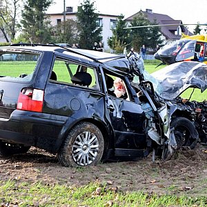 Informacje o zdarzeniu otrzymaliśmy na Alert24. - Był wypadek koło Śremu. Jeden z samochodów jest na naszych tablicach rejestracyjnych - napisał czytelnik. Na miejscu wypadku byli dziennikarze Tygodnika Ziemi Śremskiej. Jak informują do tragicznego zdarzenia doszło około godz. 14:30 na trasie wojewódzkiej 432 Śrem – Jerka. Na wysokości wsi Łuszkowo, 13 kilometrów od Śremu, zderzyły się mercedes sprinter, którym podróżowało sześć osób oraz volkswagen, którym kierował mieszkaniec powiatu gostyńskiego. Według wstępnych ustaleń policjantów z komendy w Kościanie zawinił obywatel Mołdawii, kierujący mercedesem, który jadąc od strony miejscowości Zbęchy, nie ustąpił pierwszeństwa przejazdu mieszkańcowi powiatu gostyńskiego, który jechał w stronę Śremu. Po zderzeniu mercedes miał koziołkować, a osoby nim podróżujące wypaść z wnętrza pojazdu. Niestety dla jednej z pasażerek wypadek okazał się śmiertelny. 55-letnia kobieta zginęła na miejscu. Pięć osób – w tym mieszkańca powiatu gostyńskiego – przewieziono kartkami pogotowia do szpitali w Śremie i Lesznie, a najpoważniej ranną kobietę z busa, śmigłowiec Lotniczego Pogotowia Ratunkowego przetransportował do Puszczykowa.