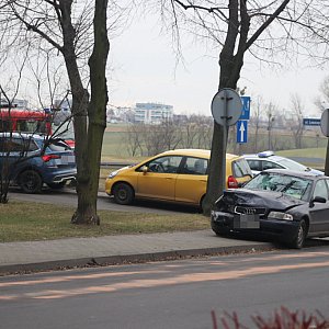W miejscu tym obowiązuje ograniczenie do 40 km/h gdyby kierujący Audi miał tyle na budziku uszkodzenia obu pojazdów były y dużo mniejsze.