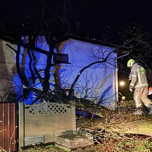 - Drzewo było oparte o budynek i uszkodziło część dachu. Straty oszacowano na ok. 2 tys. złotych - mówi asp. Bartłomiej Gościniak, dyżurny operacyjny KP PSP Gostyń.