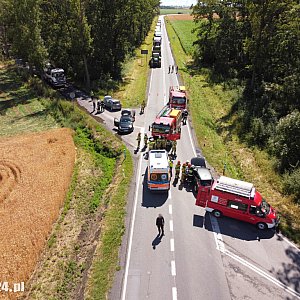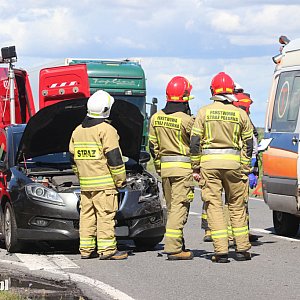 Jedna osoba trafiła do szpitala w wyniku zdarzenia drogowego, jakie miało miejsce na drodze krajowej nr 12. Na miejscu interweniowało pięć zastępów straży pożarnej. Ruch na drodze odbywał się wahadłowo.