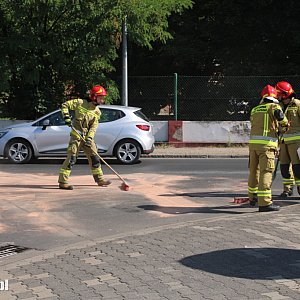 Działania strażaków polegały na usunięciu płynów wyciekających z uszkodzonego pojazdu. Sprawca kolizji mieszkaniec powiatu gostyńskiego ukarany został mandatem karnym.