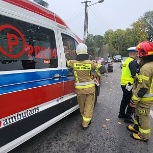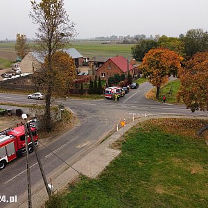 Potrącenie motorowerzystki na drodze wojewódzkiej 438. Kobieta z obrażeniami trafiła do szpitala w Gostyniu. Wszystko wskazuje na winę innej kobiety, która samochodem wyjeżdżała z drogi podporządkowanej.