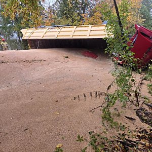 Około godz. 9:00 na trasie pomiędzy Bodzewem a Siedlcem, na wysokości siedleckiego lasu, doszło do groźnego zdarzenia drogowego. Samochód ciężarowy przewożący 24 tony pszenicy przewrócił się, a ładunek wysypał się na jezdnię. Jak informuje policja, ze wstępnych ustaleń wynika, że kierowca ciężarówki zjechał na pobocze, stracił panowanie nad pojazdem i przewrócił się. Kabina pojazdu wpadła do rowu. Na szczęście kierowca nie odniósł obrażeń. Na miejscu pracują służby, w tym policja, straż pożarna i niebawem na miejsce dotrze ciężki sprzęt.