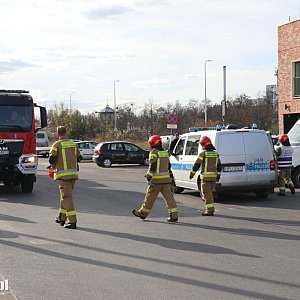 Do zdarzenia doszło około godz. 16:30 na skrzyżowaniu ulic Przy Dworcu i Towarowej. Zderzyły się tam dwa samochody osobowe - Mazda i Jeep. Łącznie pojazdami podróżowało pięć osób, w tym 9-letnie dziecko. Wszystkie osoby opuściły auta jeszcze przed przyjazdem służb.