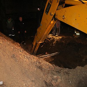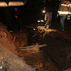 - Musieliśmy sprecyzować, gdzie dokładnie przebiega ta rura. Nie było to wbrew pozorom proste, bo to stare budownictwo - tłumaczy druh Grzegorz Wabiński. -Natrafiliśmy na przyłącza. elektryczne i ominęliśmy je, ale jak na złość trafiliśmy na rurę z wodą - dodaje nasz rozmówca.