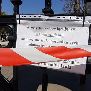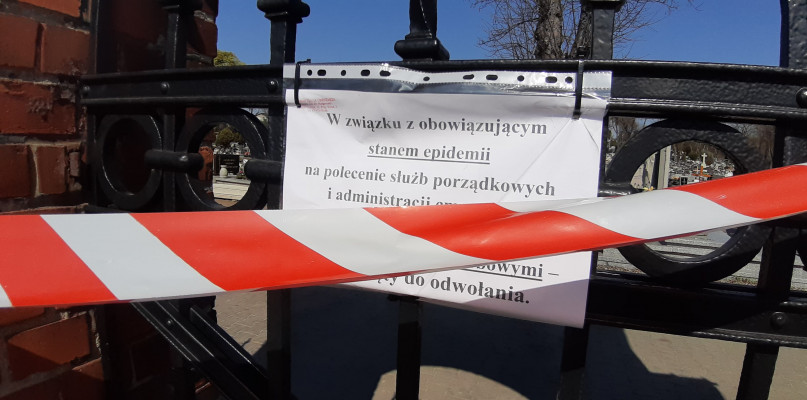 Na bramach pojawiły się taśmy ostrzegawcze i dwa komunikaty. - W związku z obowiązującym stanem epidemii na polecenie służb porządkowych i administracji cmentarza, cmentarz parafialny – poza obrzędami pogrzebowymi - zamknięty do odwołania - czytamy na bramie głównej. Obok zawieszona jest druga kartka. - Uprzejmie informujemy, ze ze względu na stan epidemii w uroczystości pogrzebowej na cmentarzu może brać udział tylko 5 osób. To oznacza, że od teraz, na cmentarzu przebywać mogą tylko uczestnicy ceremonii pogrzebowej, w tym obsługa cmentarza i zakładów pogrzebowych.