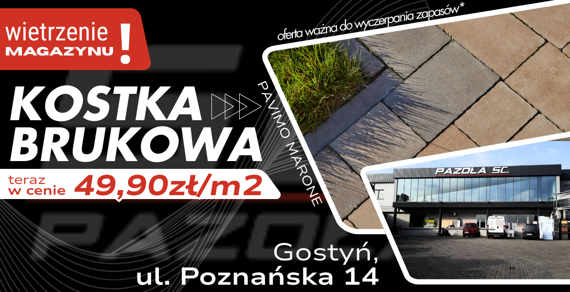 Takiej okazji nie można przegapić! Hurtownia budowlana Pazoła S.C.2 w Gostyniu ogłosiła wielkie wietrzenie magazynów. To doskonały moment, by zrealizować plany związane z budową podjazdu przed domem lub utwardzeniem parkingu przy firmie. W ofercie znalazła się kostka brukowa od renomowanego producenta, ceniona za trwałość i estetyczny wygląd, która teraz dostępna jest w wyjątkowej cenie.