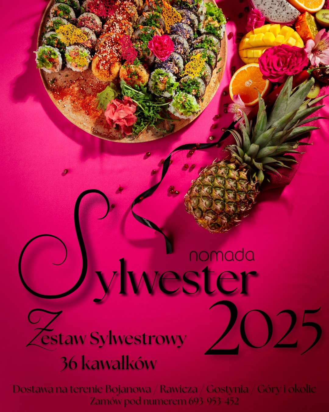 Planujesz Sylwestra w domowym klimacie, w gronie najbliższych, albo robisz większą domówkę i chcesz, żeby na stole było coś naprawdę „z charakterem”? Nomada Sushi Bar z Bojanowa przygotował ofertę na Sylwestra 2025, która idealnie pasuje do takiego scenariusza. To propozycja dla tych, którzy lubią, gdy jedzenie nie tylko smakuje, ale też wygląda jak gotowa dekoracja stołu. Zestaw jest pomyślany tak, by sprawdził się zarówno na rodzinne spotkanie, jak i na imprezę ze znajomymi, a nawet na sylwestrową randkę w salonie.