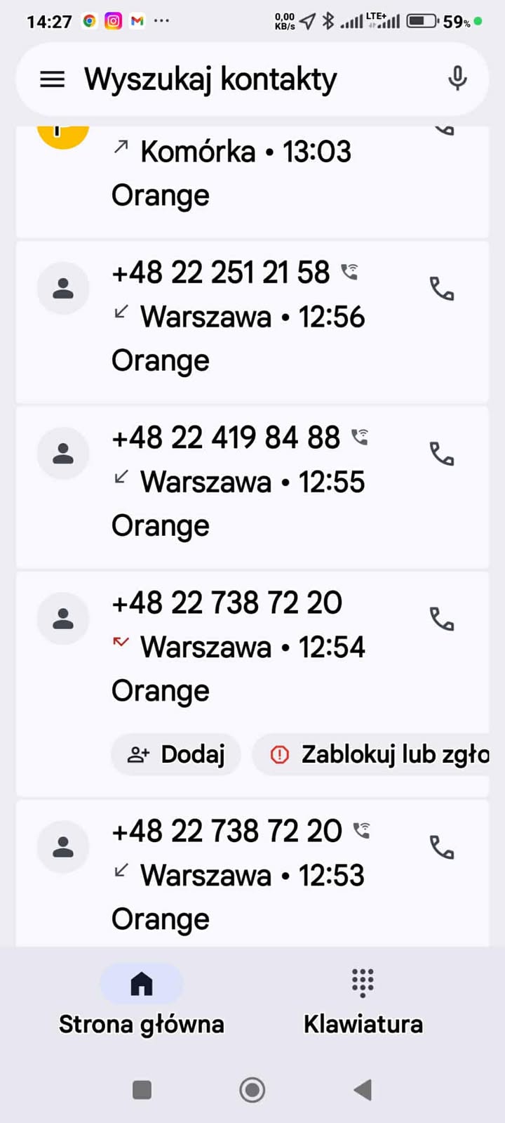 Jak relacjonuje dalej, rozmówca poinformował ją, że "za chwilę zadzwoni departament banku", żeby zablokować jej środki. W międzyczasie kobieta, która była w tym czasie w pracy, skontaktowała się ze swoim przełożonym, pytając, jak powinna się zachować. Po chwili na jej telefon zaczęły dobijać się kolejne numery z Warszawy, na potwierdzenie czego przesłała nam screeny.