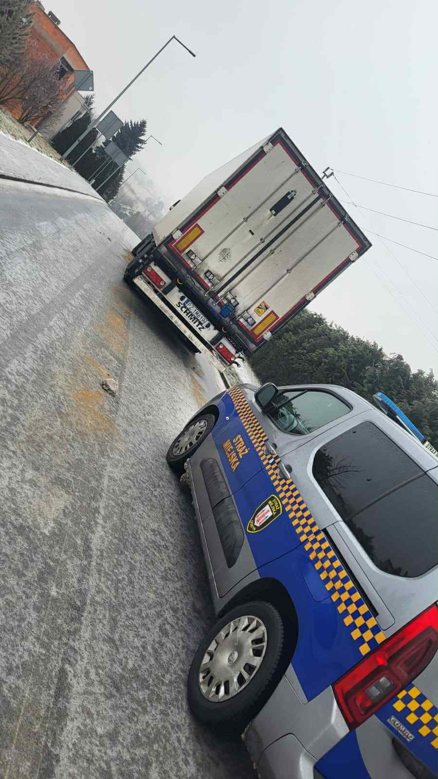 Do redakcji trafiły również sygnały z innych miejscowości. Jedna z osób przesłała zdjęcie z Krajewic, na którym widać tira stojącego w poprzek drogi. Jak podkreśla mieszkaniec, podobnych sytuacji z samochodami, które tracą przyczepność i stają w poprzek jezdni, miało być więcej w tym rejonie.