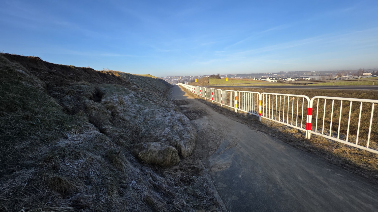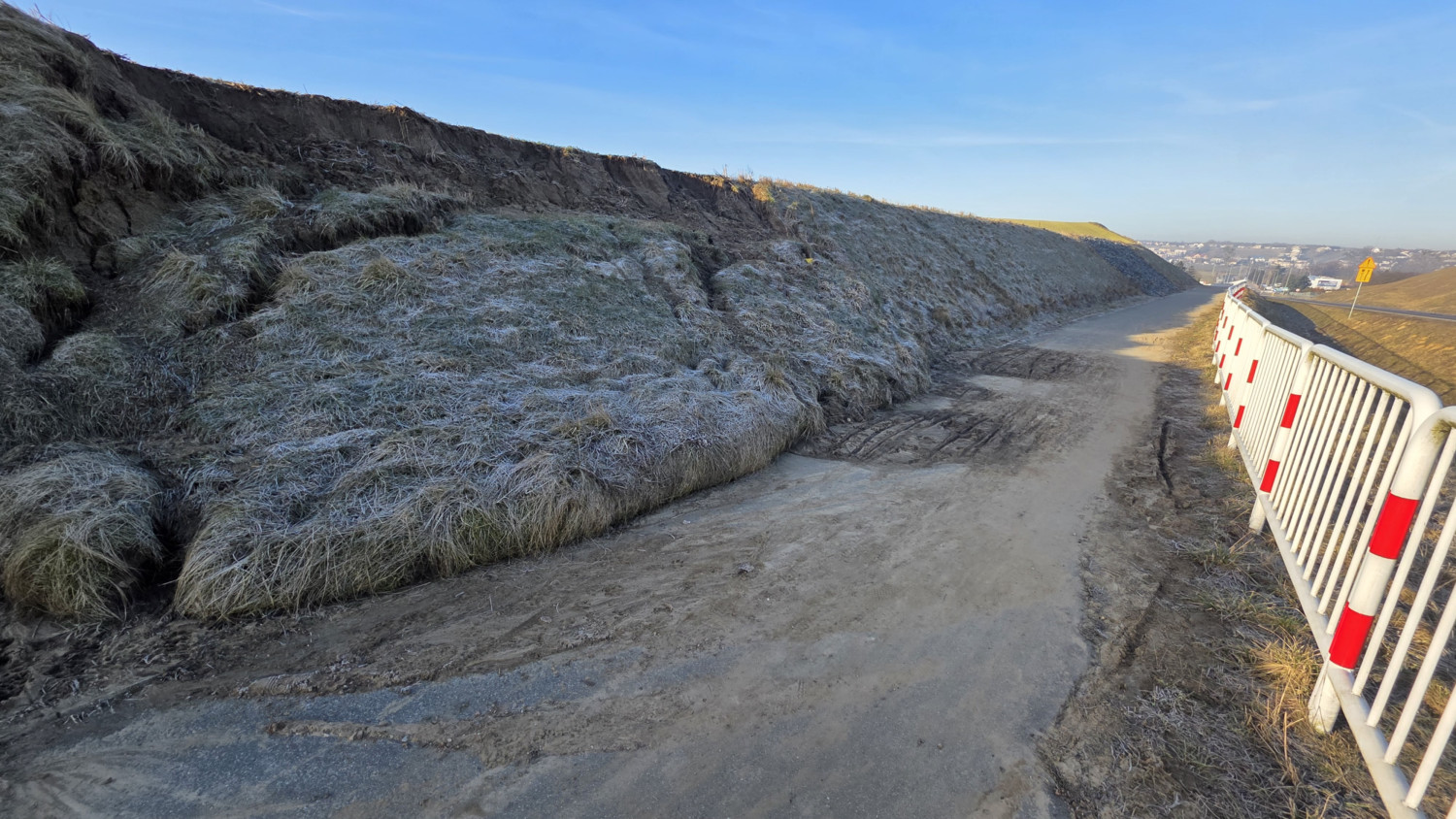 Na odcinku ścieżki pieszo-rowerowej pomiędzy ul. Europejską a rondem Drzęczewo, doszło do osunięcia skarpy. Ziemia "zeszła" zwężając przejazd. Sytuacja raczej nie stwarza zagrożenia dla osób korzystających z trasy, ale na pierwszy rzut oka widać, że naprawa jest potrzebna.