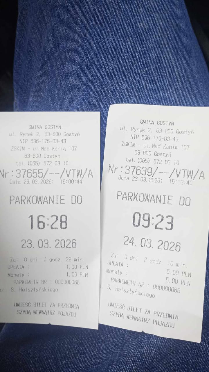 Kierowca opisał sytuację, która go zaskoczyła. Bilet został kupiony 23 marca 2026 roku o godz. 15:13. Za parkowanie na 2 godziny i 10 minut zapłacił 5 zł. Na wydruku zobaczył jednak, że może parkować aż do godz. 9:23 następnego dnia, czyli 24 marca. Taki zapis wzbudził jego zdziwienie, bo z pozoru wyglądało to tak, jakby za kilka złotych można było zostawić auto na wiele godzin dłużej, niż wynikałoby to z wykupionego czasu postoju.