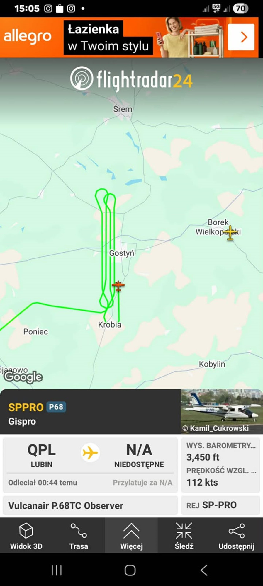 - Skanuje Gostyń - napisał jeden z czytelników i podesłał screen z aplikacji Flightradar.