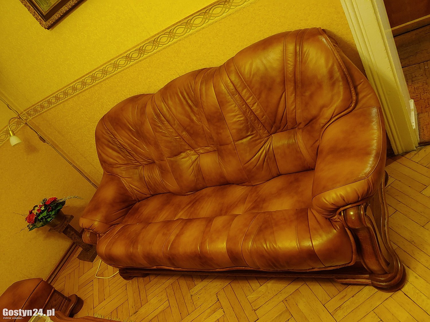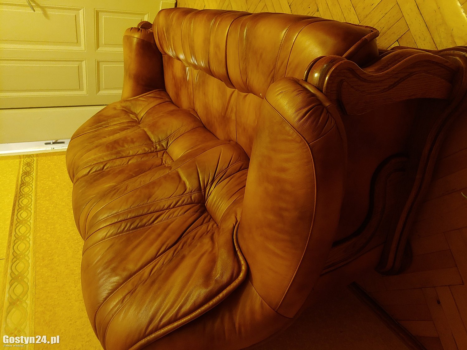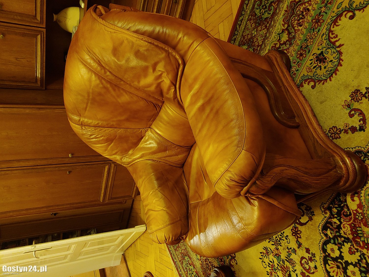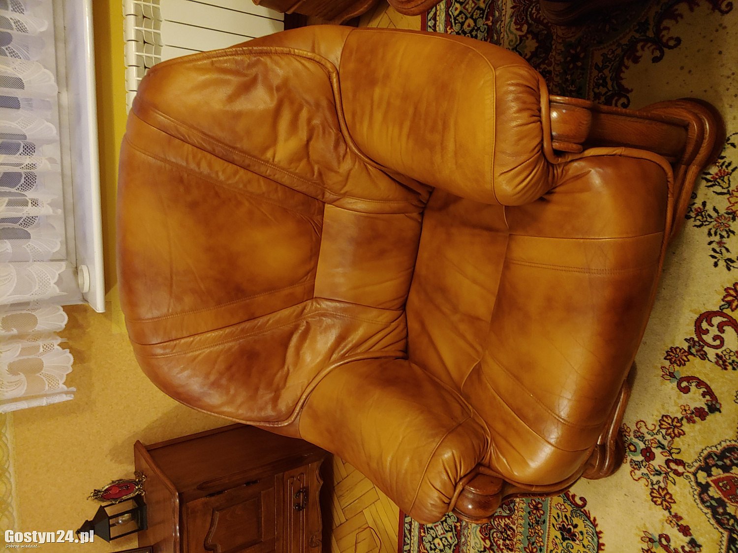Sprzedam wypoczynek skórzany, który składa się z kanapy trzyosobowej, dwóch foteli oraz ławy. Kanapa oraz fotele są z elementami drewna oraz skóry w kolorze ciepłego brązu. Zestaw skórzany mało używany, stan bardzo dobry.