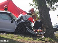 Sygnalizacja i dodatkowe oświetlenie nad przejściem dla pieszych na krajowej "dwunastce" w najbliższym czasie nie będzie działało. Elementy zostały uszkodzone przez przejeżdżający pojazd. Kierowca nie zatrzymał, a wiszące nad jezdnią fragmenty usunęli wezwani na miejsce strażacy