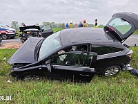 Cztery osoby trafiły do szpitala po dachowaniu busa w okolicach Ciołkowa. Auto, którym podróżowali, przewrócił się na bok i zostało poważnie uszkodzone. Droga jest całkowicie zablokowana, a służby cały czas działają na miejscu zdarzenia.