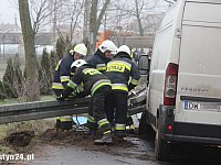 Wypadek na drodze wojewódzkiej 434 w Gostyniu. Zderzyły się dwa samochody osobowe. Do szpitala przewieziono kierowcę volkswagena, który najprawdopodobniej zasłabł za kierownicą